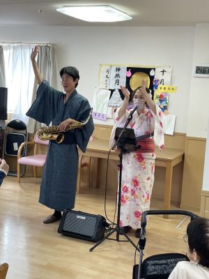 サックスとウクレレの演奏で懐かしい歌謡曲を奏でていただきました。
